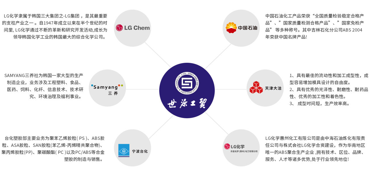 深圳市世源工貿有限公司成立于2005年, 是一家專注于國內外塑膠原料經營的商貿企業,具有一般納稅人資格和進出口權,同時擁有國內外知名塑料品牌的一級代理權,憑著與化工廠良好的關系及優秀的銷售網絡,在華南塑料貿易行業中享有良好的聲譽。目前是深圳市寶安區“五類百強”企業之一。